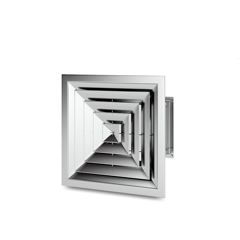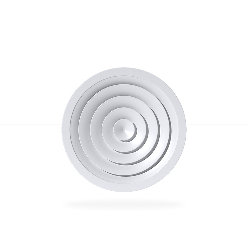 用于冷暖送風(fēng),常安裝在頂棚上 吹出氣流呈貼附(平送)型 可以供給較大的風(fēng)量 在給定風(fēng)量范圍內(nèi)擴(kuò)散半徑可大小變化 可與圓形對(duì)開調(diào)節(jié)閥配套使用