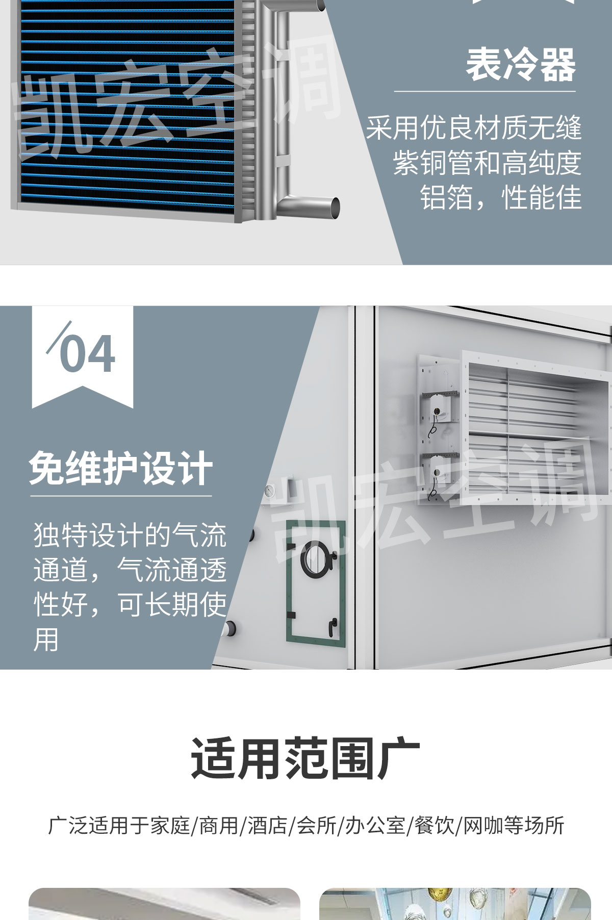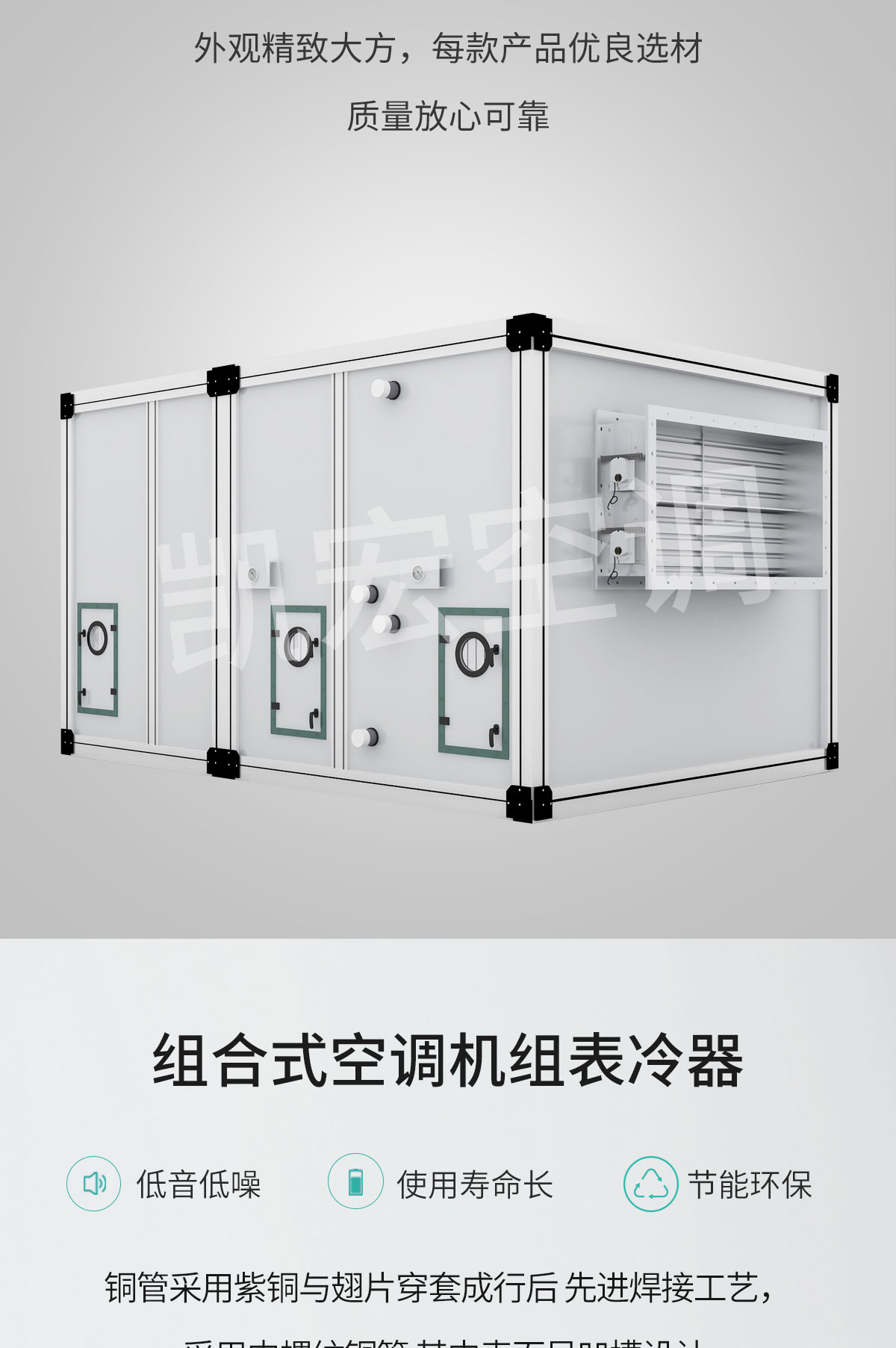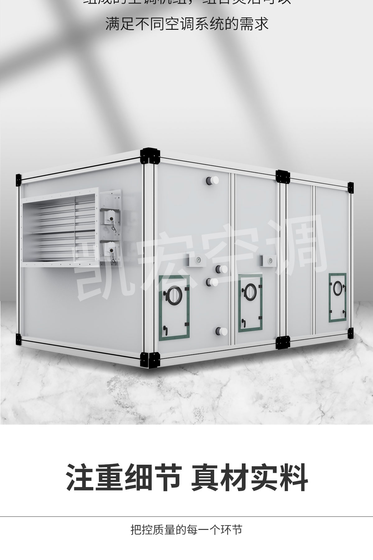 YG系列組合式空調(diào)機組是凱宏空調(diào)結(jié)合數(shù)十年專業(yè)生產(chǎn)空調(diào)機組的經(jīng)驗,借鑒國內(nèi)外同類機組優(yōu)點的基礎(chǔ)上,引進先進技術(shù)和生產(chǎn)工藝開發(fā)而成。該機組可對空氣進行冷卻、干燥、加熱、加濕、過濾、凈化,并具有消聲功能??蓮V泛適用于商場、賓館、寫字樓、體育館等需空氣集中處理的場合,以及醫(yī)院手術(shù)室、制藥、卷煙、食品、精密儀器制造等凈化空調(diào)場合 YG系列組合式空調(diào)機組分通用型機組(YG)、凈化型機組( YGJ)兩種。處理風量2000~ 200000m3/h。我單位生產(chǎn)的空調(diào)機組各項性能(如冷、熱量、噪音、密封性)均已達到國內(nèi)領(lǐng)先水平
