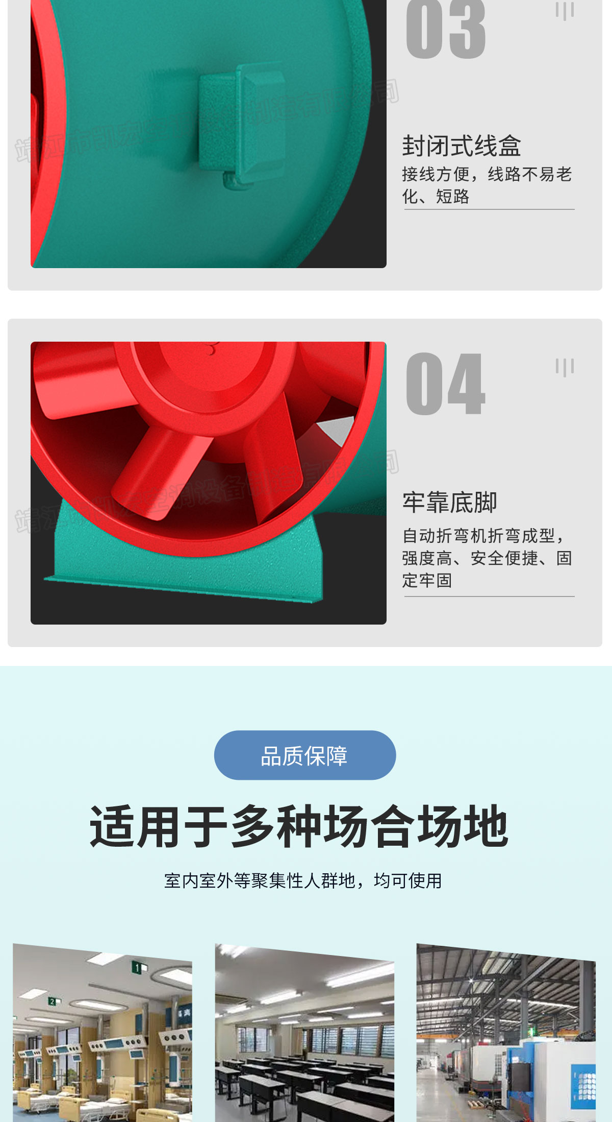 HTF系列消防高溫排煙風(fēng)機(jī)適用于高層建筑、地下建筑及隧道、烘房等通風(fēng)換氣或高溫排煙。能在300℃高溫條件下連續(xù)運(yùn)轉(zhuǎn)60分鐘以上,介質(zhì)溫度100℃條件下連續(xù)運(yùn)行20小時(shí)/次不損壞,是理想的消防必備設(shè)施 型號: HTF -I型為單速高溫排煙風(fēng)機(jī); HTF -II型為雙速高溫排煙風(fēng)機(jī),可以一機(jī)兩用(即平時(shí)通風(fēng)及高溫排煙) ; HTF -III型專用于屋頂排放高溫氣體; HTF -X型為包復(fù)式消聲排煙風(fēng)機(jī),用于對噪聲有特殊要求的通風(fēng)換氣及高溫排煙的場所