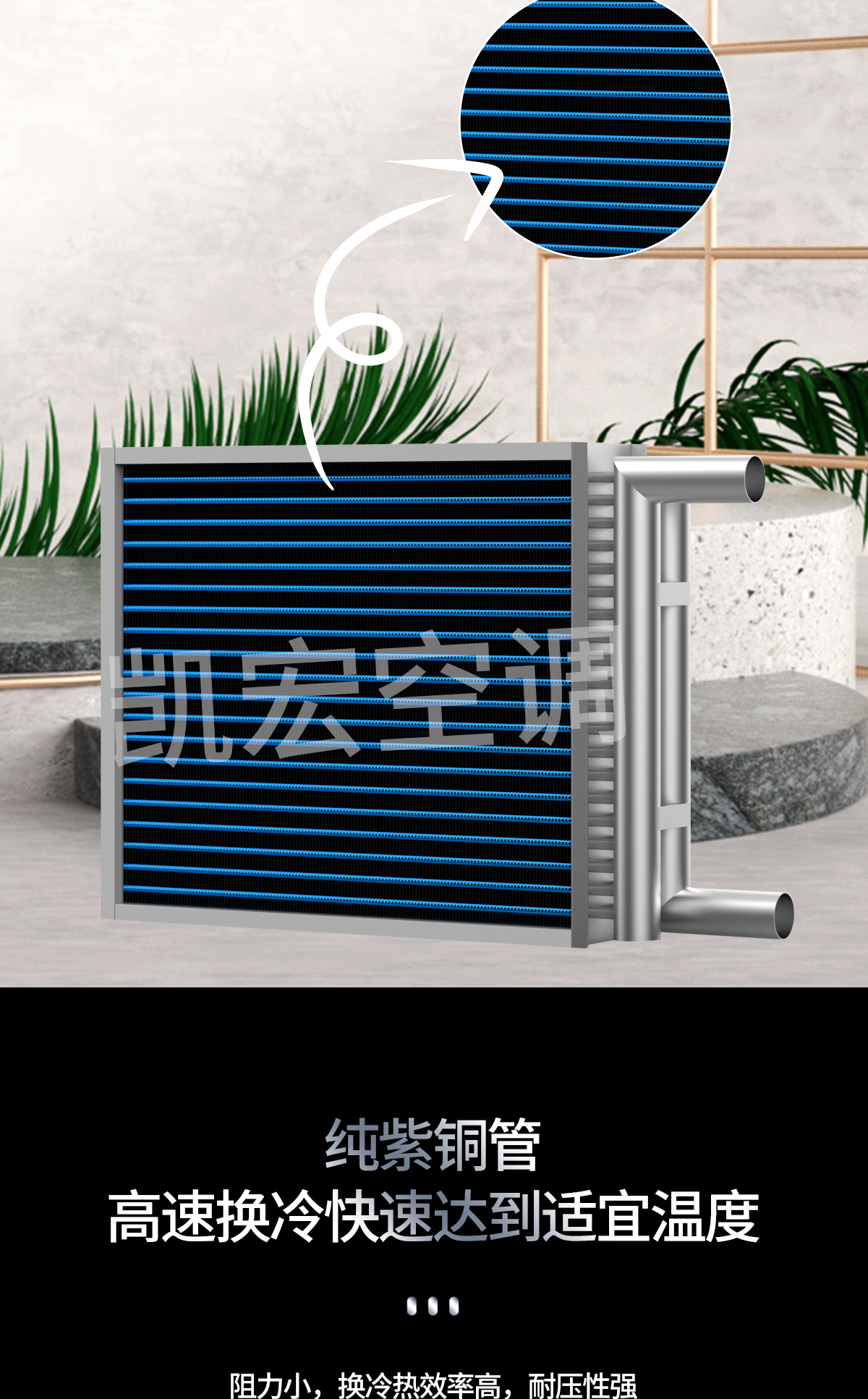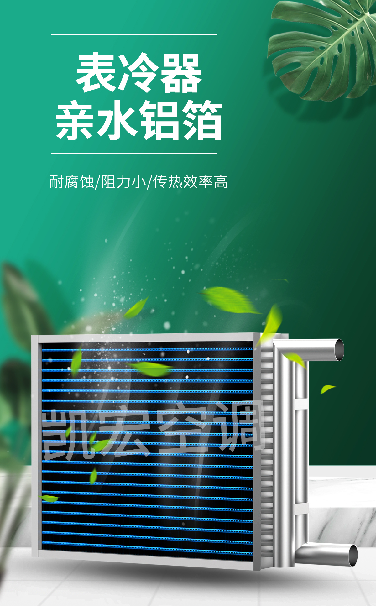 全稱表面式冷卻器,其原理是讓熱媒或冷媒或制冷工質(zhì)流過(guò)金屬管道內(nèi)腔,而要處理的空氣流過(guò)金屬管道外壁進(jìn)行熱交換來(lái)達(dá)到加熱或冷卻空氣的目的。